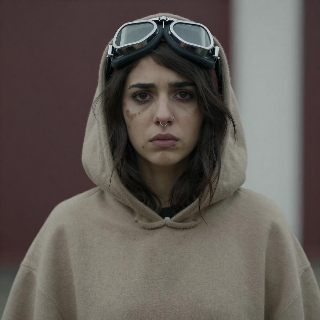 Photograph of a person with long dark hair, open mouth in a scream, illuminated by red and green light bars. Wearing a dark suit over a bright orange shirt. Dark background. Two horizontal light bars, one red, one green, across the face. Lower left corner has a website .
