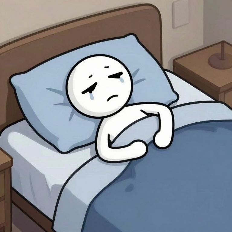 Introspection a stick figure meme where a stick figure is laying depressed in bed with tired eyes and clothes on the bed,