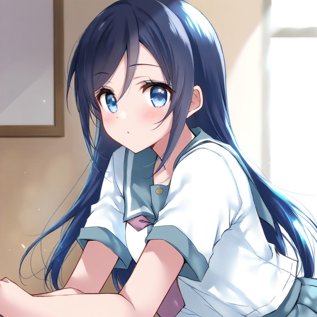 Asari nanami, idolmaster, 1girl, blue eyes, blue hair, long hair, very long hair, fish hair ornament, hair rings, by artist fud, animagine