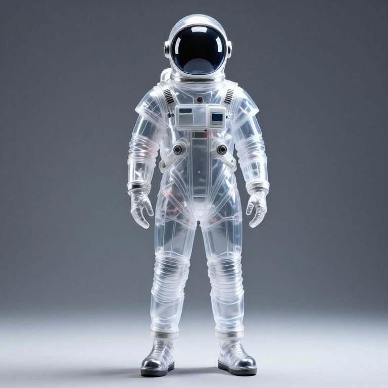 Beloved transparent space suit, transparent material, multi transparent layer, full body, fashion lighting, big contrast,