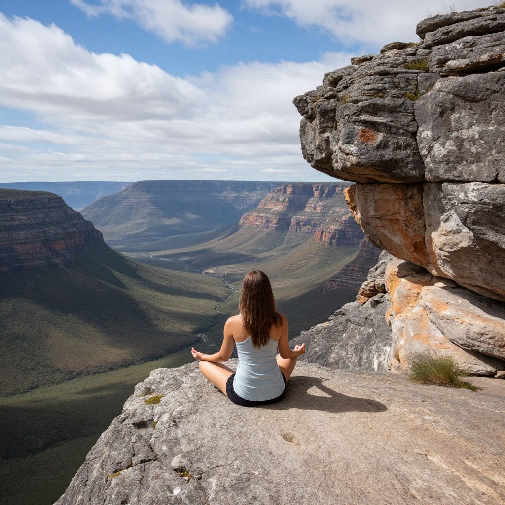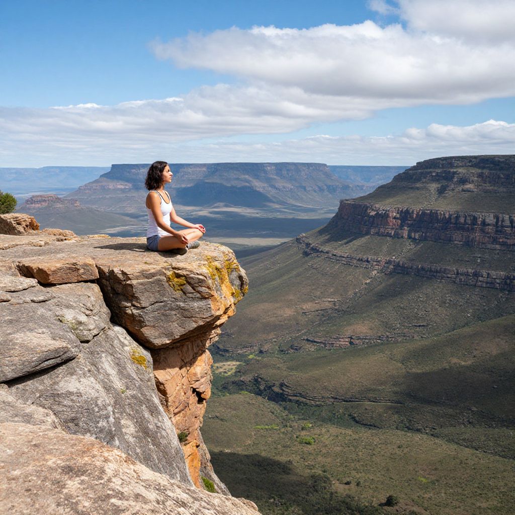 Backpacking Beauty In Nature Calm Canyon Gorge High Landscape Ledge Leopards Rock Meditation Mountain Mountain Range Oribi Gorge Overhang Scenic Scenics Sky Sky And Clouds South Africa Tranquil Scene Tranquility Tranquility Traveling View From Above Woman