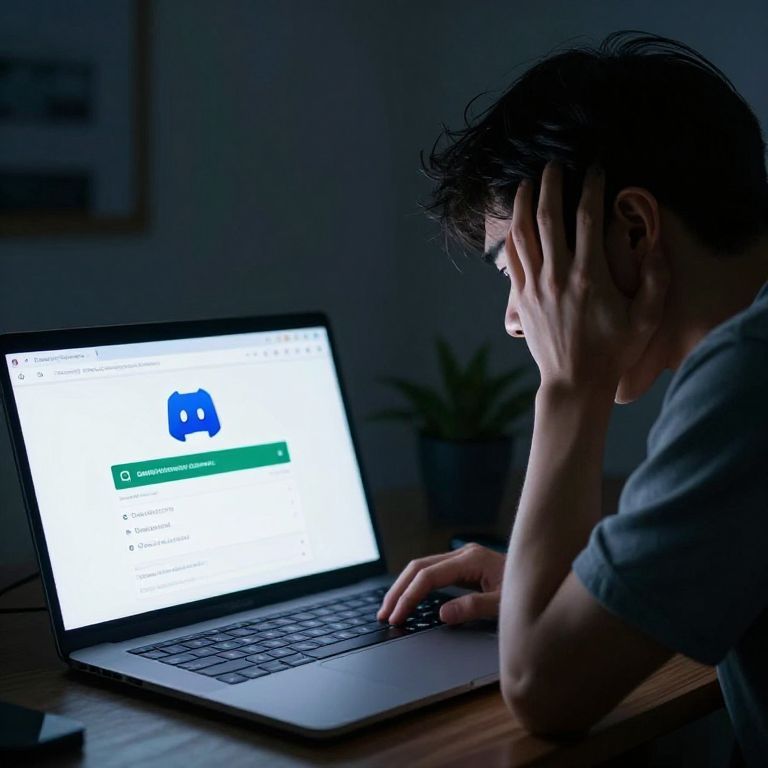 Cancel Discord subscription moment, frustrated person looking at laptop with Discord subscription page, notification confirming cancellation, dim room lit by screen, expressive digital art capturing emotional release from recurring payments