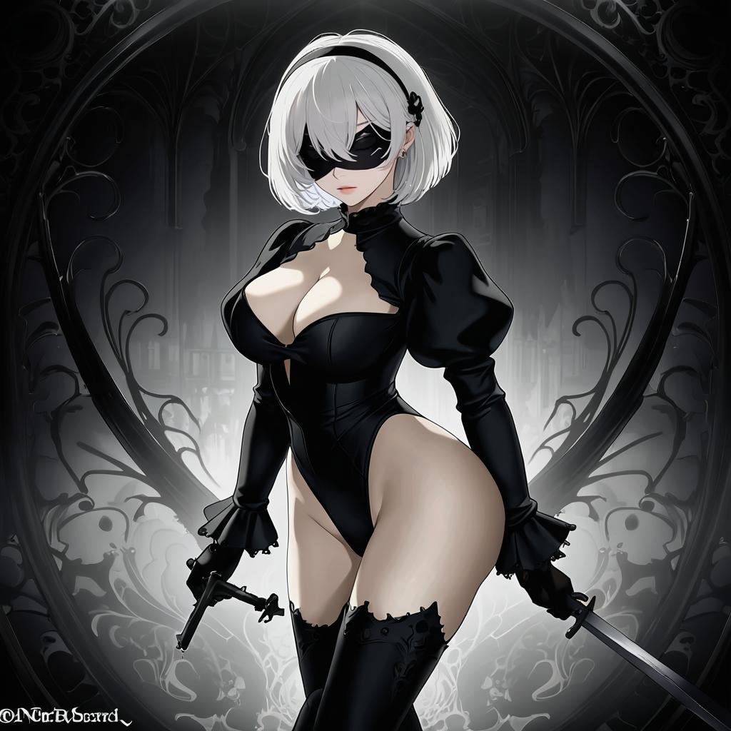 Illustration of 2b (nier:automata), nier (series) in the style of Tro