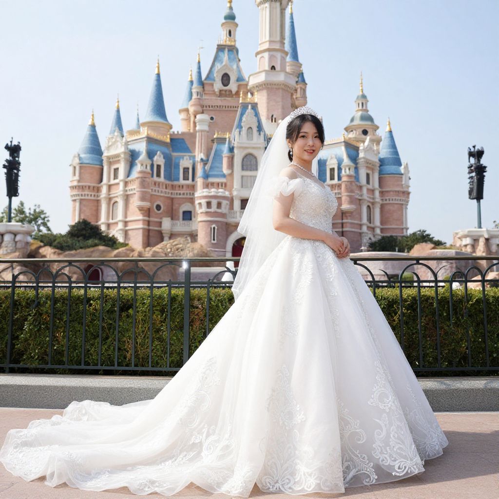 Disney Wedding Dress, woman in a wedding dress posing for a picture