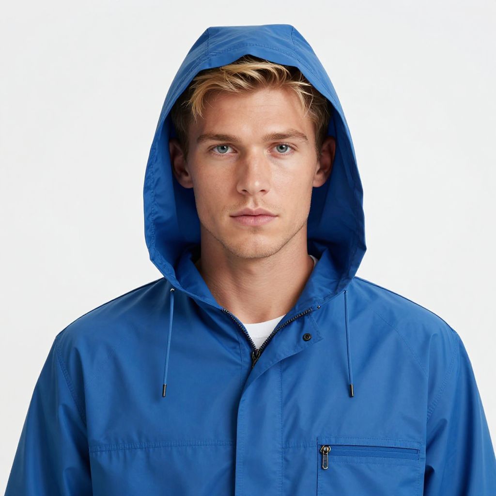 Realistic Male in Blue Raincoat