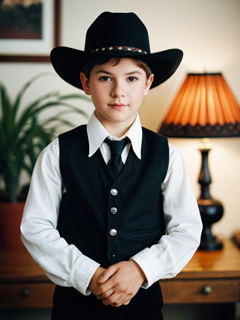 Boy in Striped Halloween Costume Outdoors