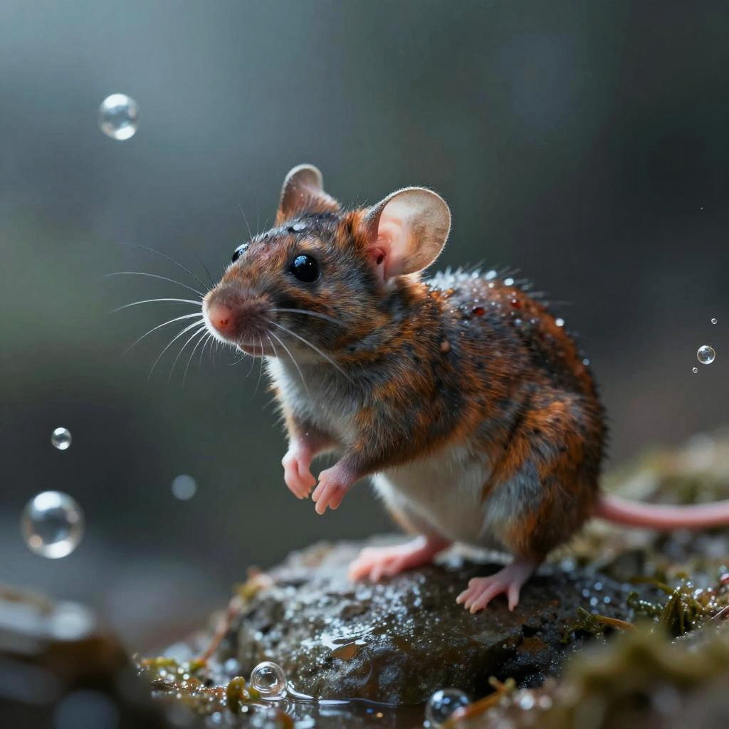 (photorealistic:1.4), (best quality:1.0), (ultra highres:1.0), 8k, RAW photo, (masterpiece:0.2), mice, (floating, liquid, bubbles), science fiction