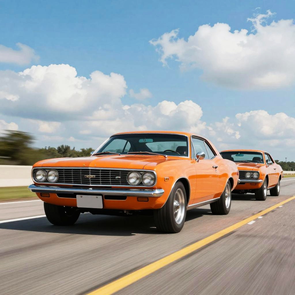 Vintage Orange Muscle Cars Racing