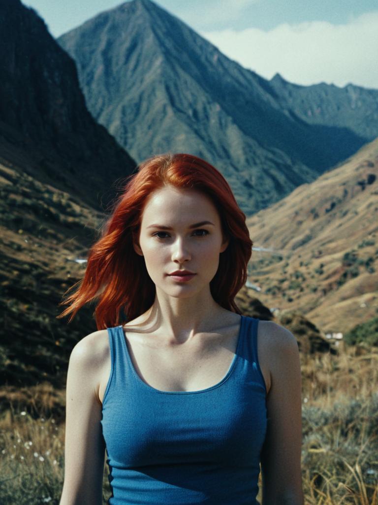 Red-Haired Woman by Mountain