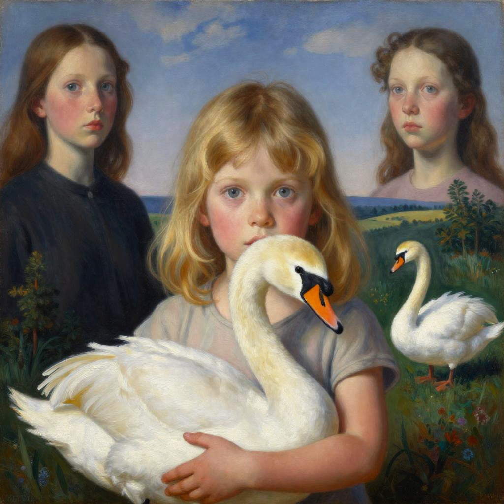 Surreal Oil Painting of Woman Holding Hippo