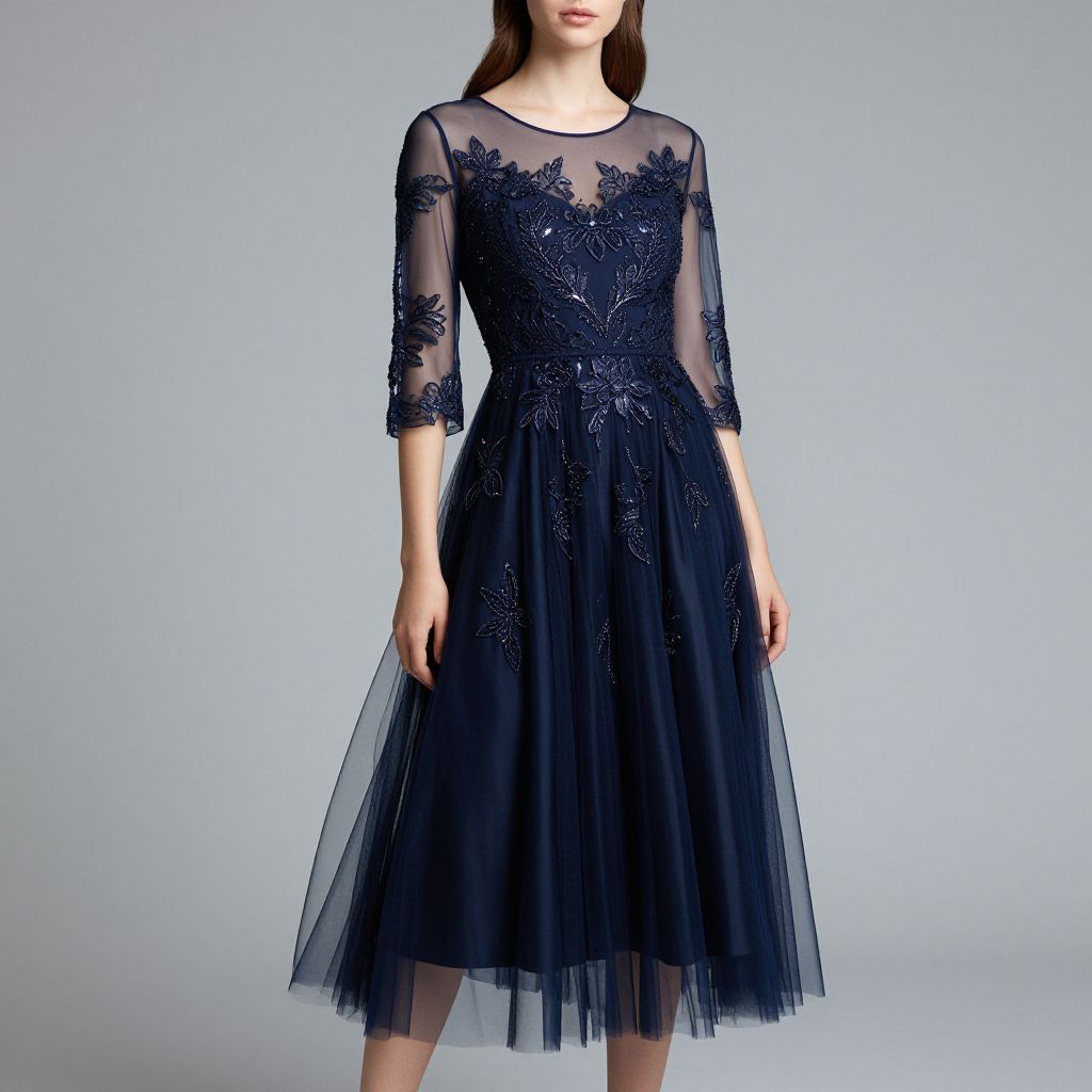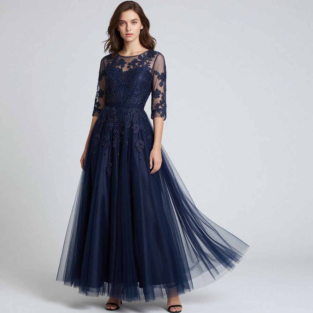 Elegant Navy Tulle Dress Showcase