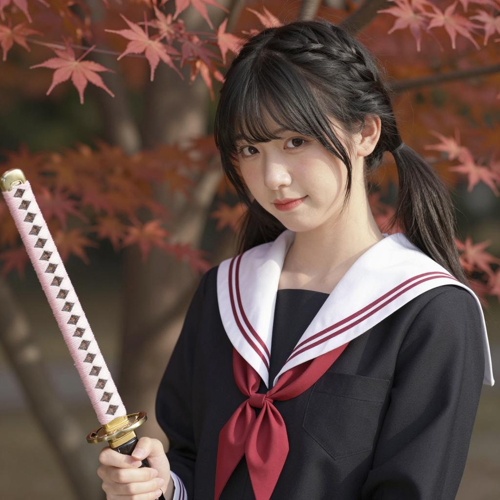 Asian Woman in Kimono with Katana