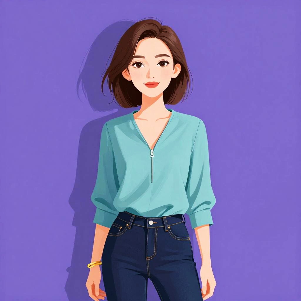 Casual Woman in Polka Dot Blouse