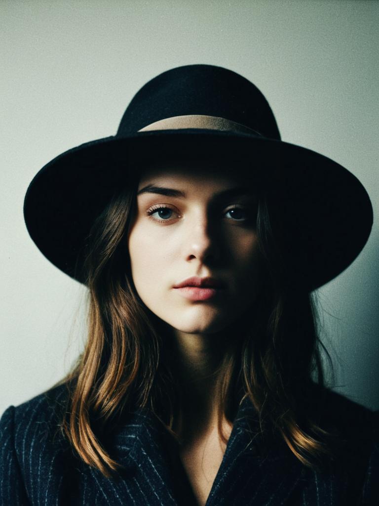 Stylish Cinematic Hat Fashion Portrait