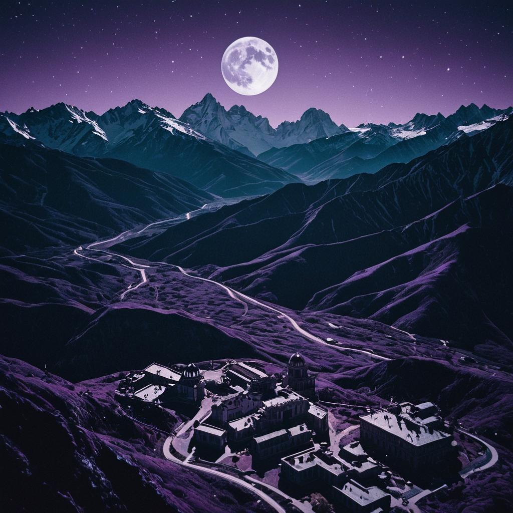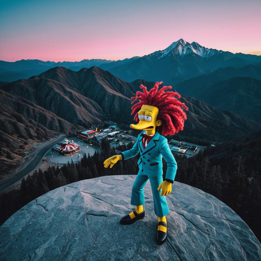 Edna Krabappel Aerial View perspective, Futuristic Design, Dreamwave Theme, Seaside Photography Scene, Glossy Obsidian Material, Backlight Lighting.
