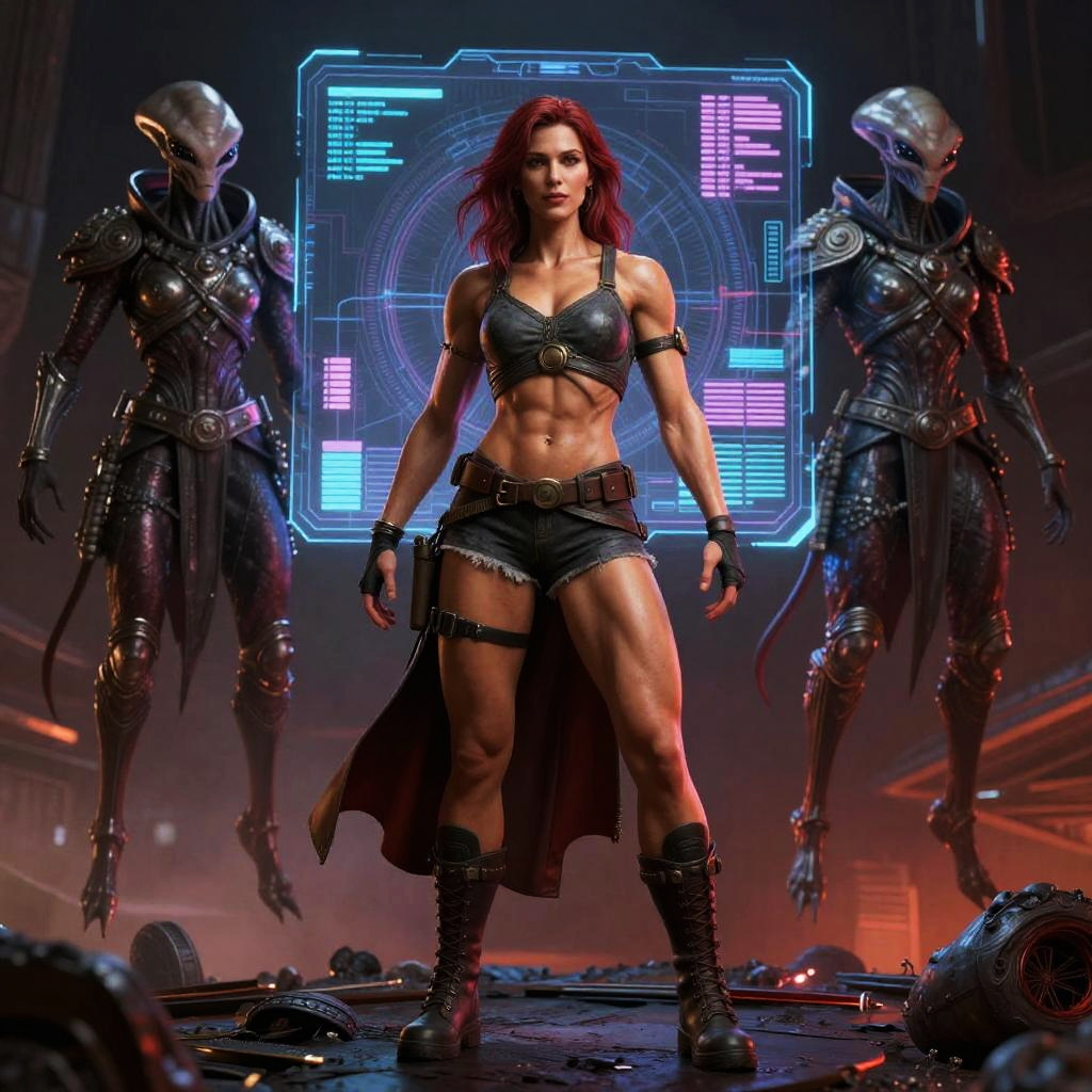 Muscular Woman and Alien Warrior Hologram