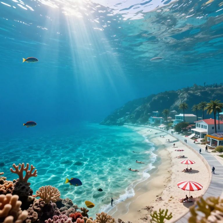 Sculpting n the middle of a new york street at night there is a circular portal connecting to a sunny tropical beach, super realistic, 4k,