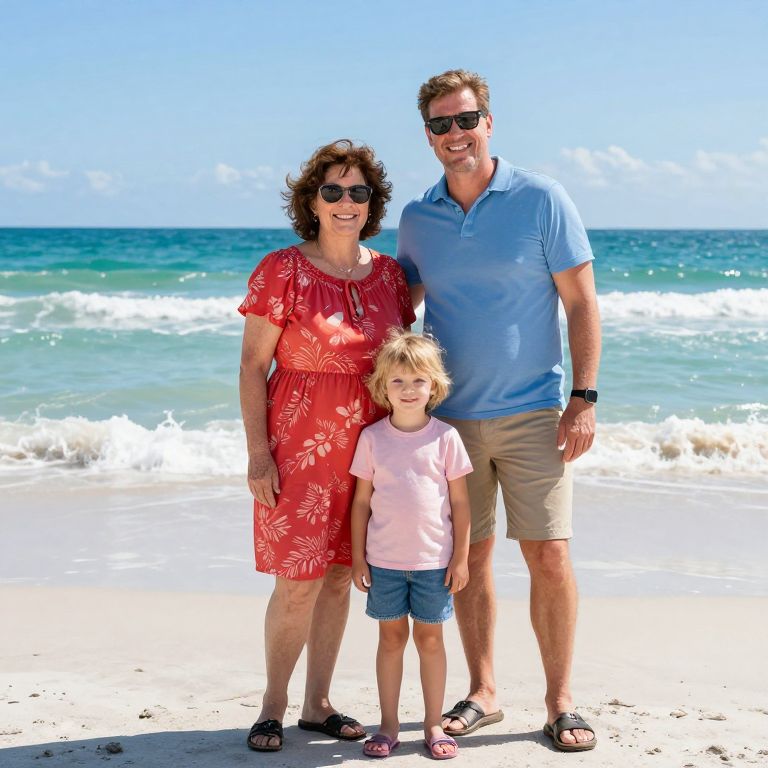 Hanna Barbera Mom, Dad, son, daughter, Florida ocean, spring break, red tide, shark attack, photo realistic,