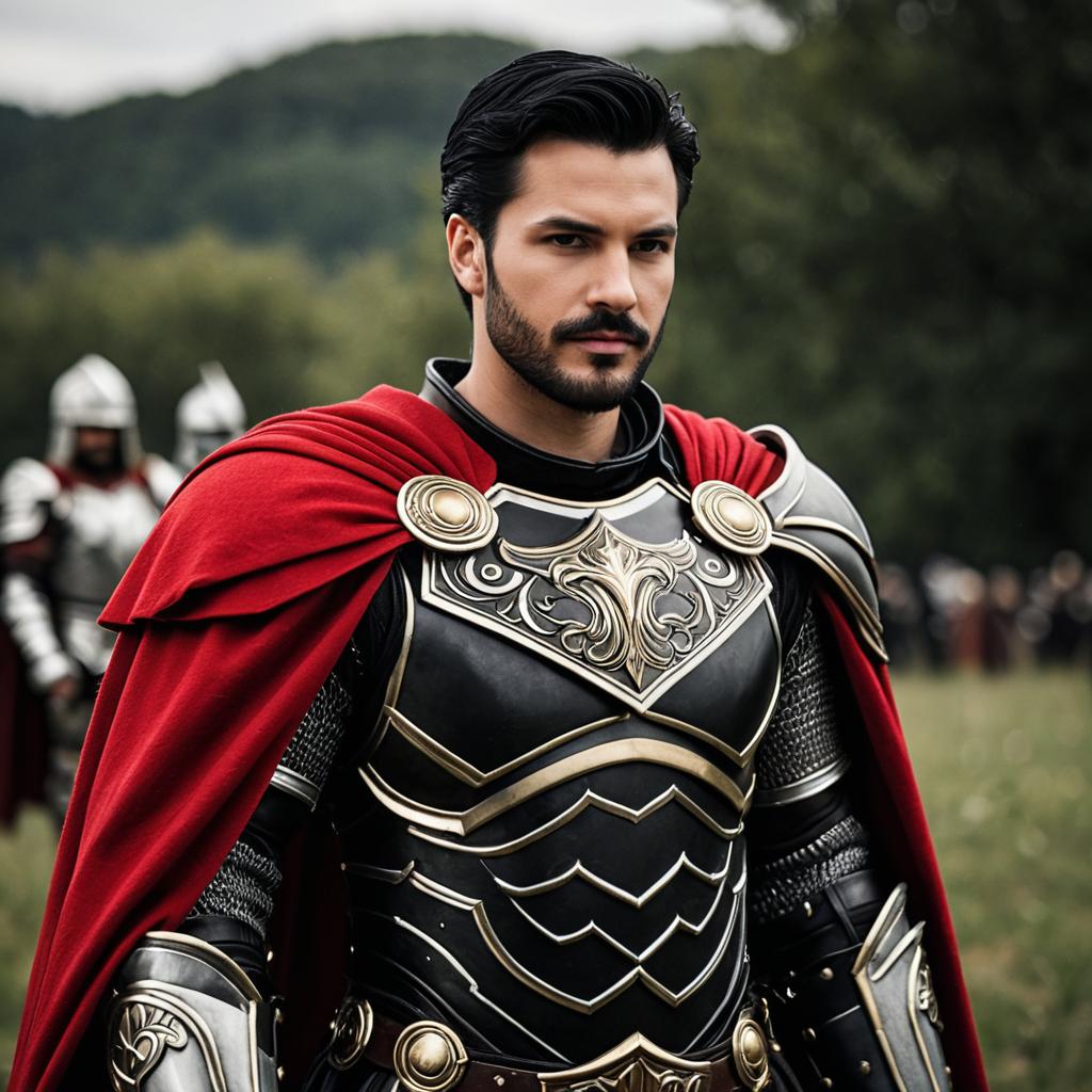 Portrait of a bearded male dressed in a light grey wizard robe with a hood. He has striking white hair and a full beard with a mix of black and white. The man is wearing jewelry including a chain necklace with a pendant and decorative elements on his robe. The background is blurred, emphasizing the subject's intense gaze and detailed facial features.