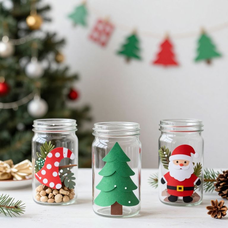 Decoraci n navide a con papel frascos pi as telas y for Decoracion de navidad manualidades faciles
