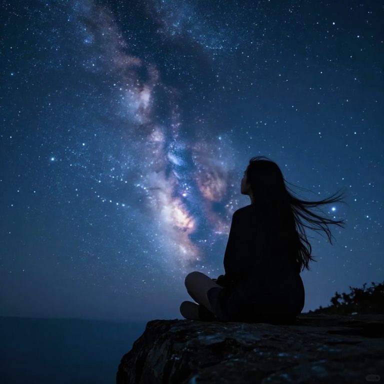 Girl Gazing at Starry Night Sky
