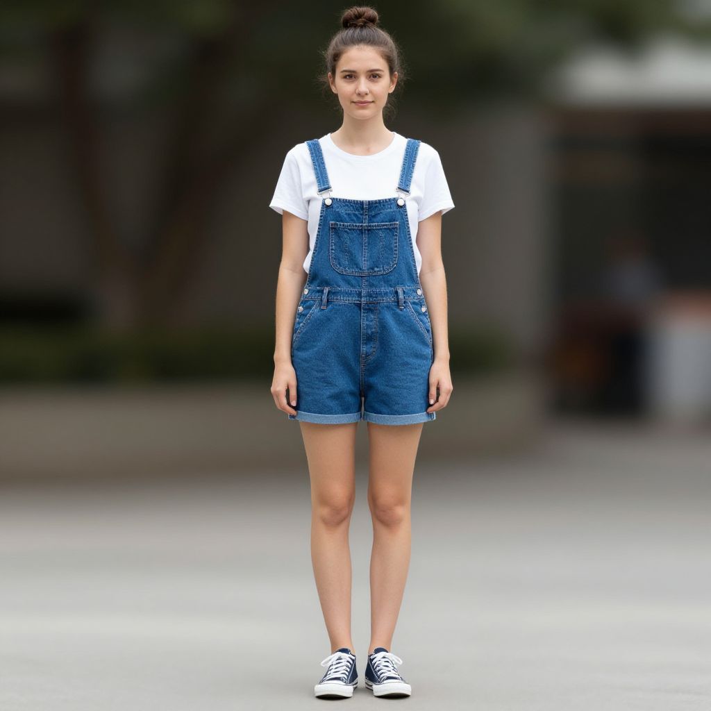 Photorealistic Woman in Denim Overalls