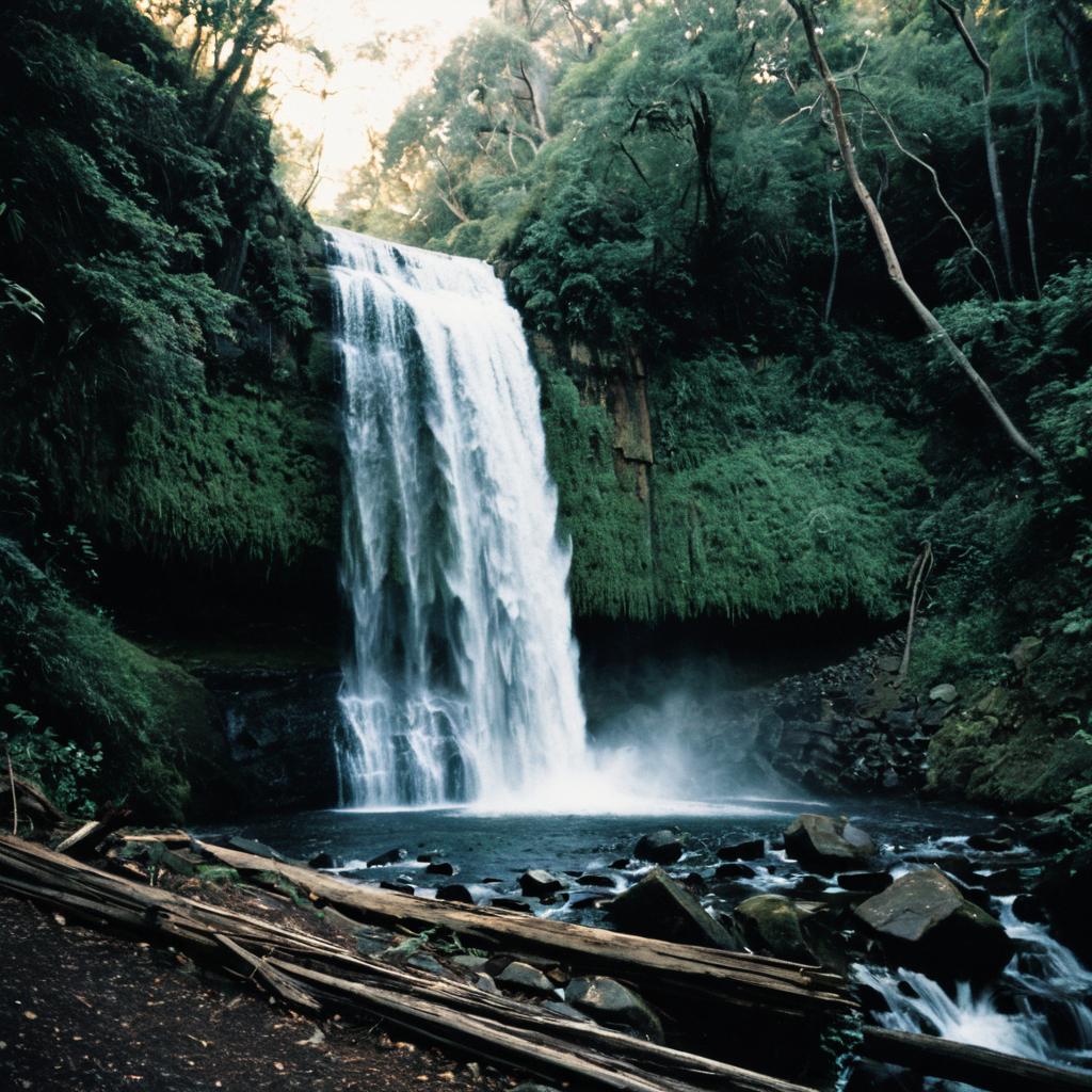 A Serene Waterfall, Cindergrove Revisited, whispers of inspiration, a muse's gentle touch, igniting creative fires and birthing artistic expression, tranquil.