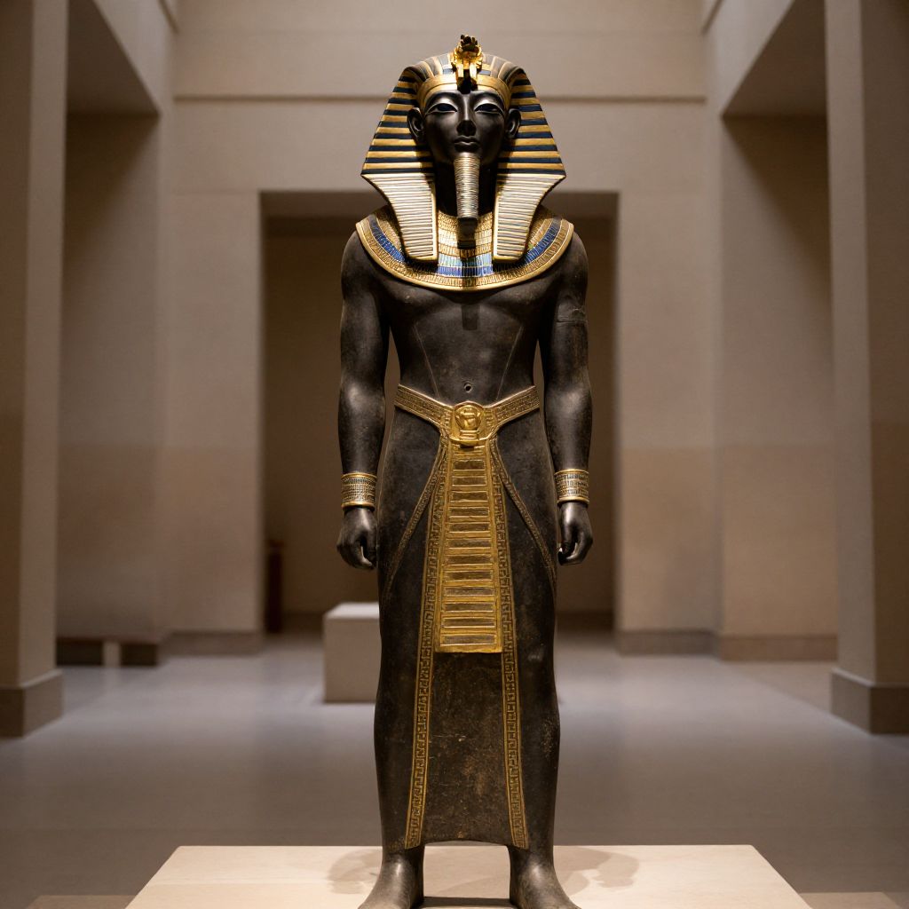Egyptian Dark Pharaoh Costume Man, statue of an egyptian man in a tusk in a museum