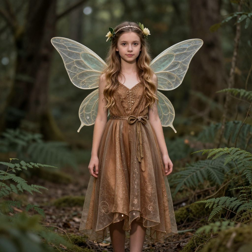 Woodland Fairy Girl in Brown Dress