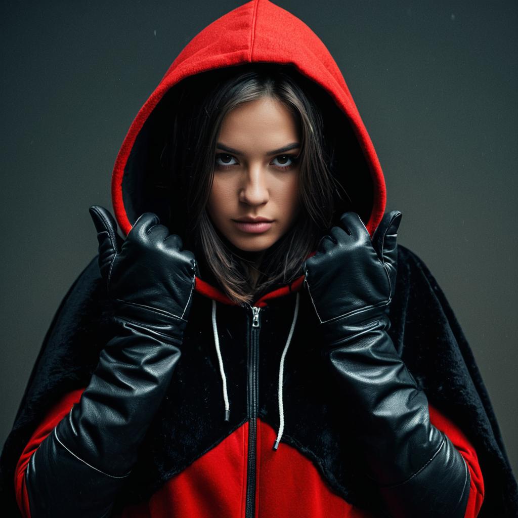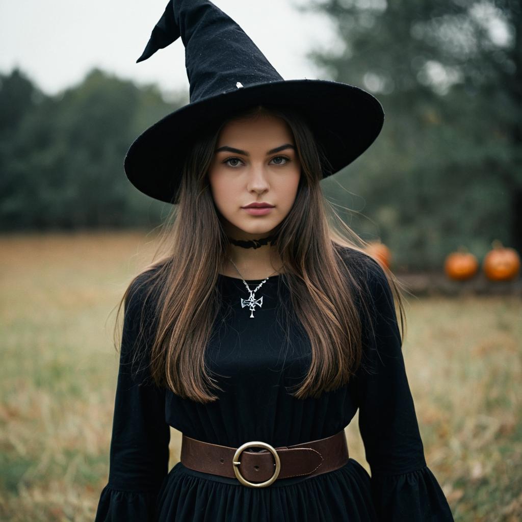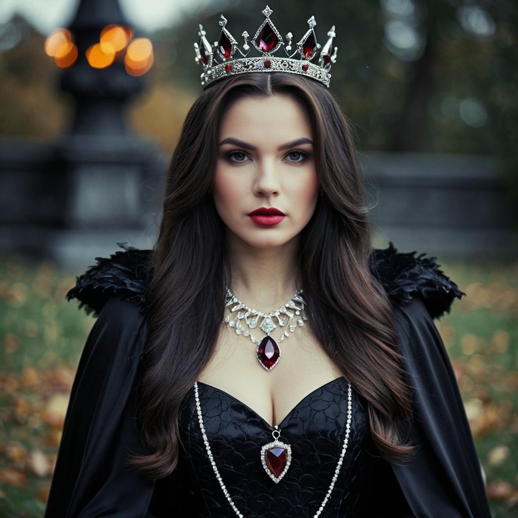 Halloween costume south,1girl, solo, black hair, looking at viewer, jewelry, long hair, hood, blurry, blurry background, realistic, necklace
