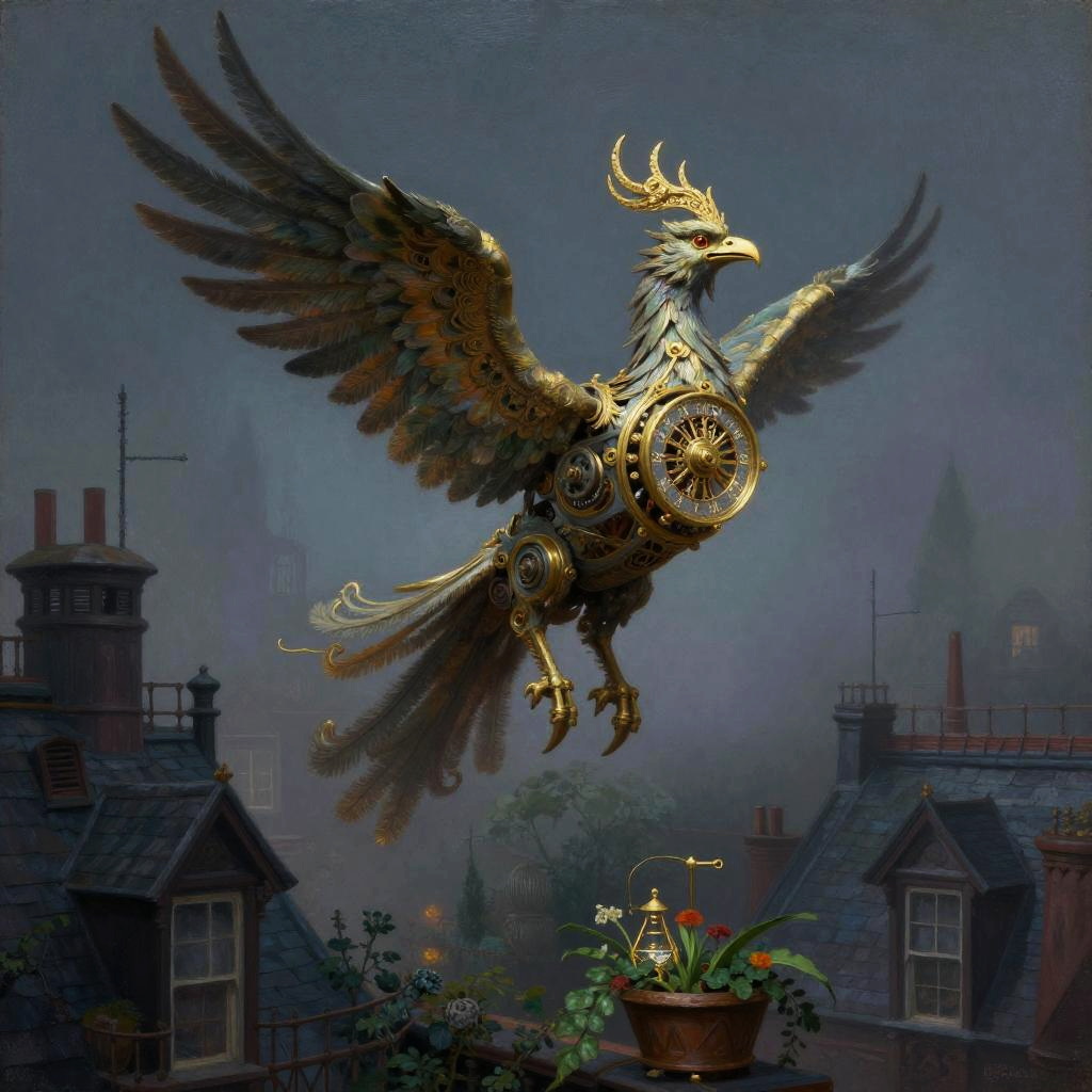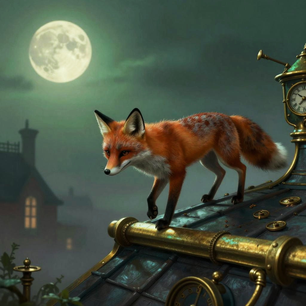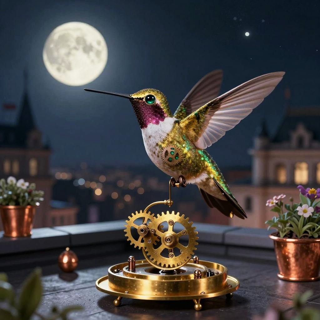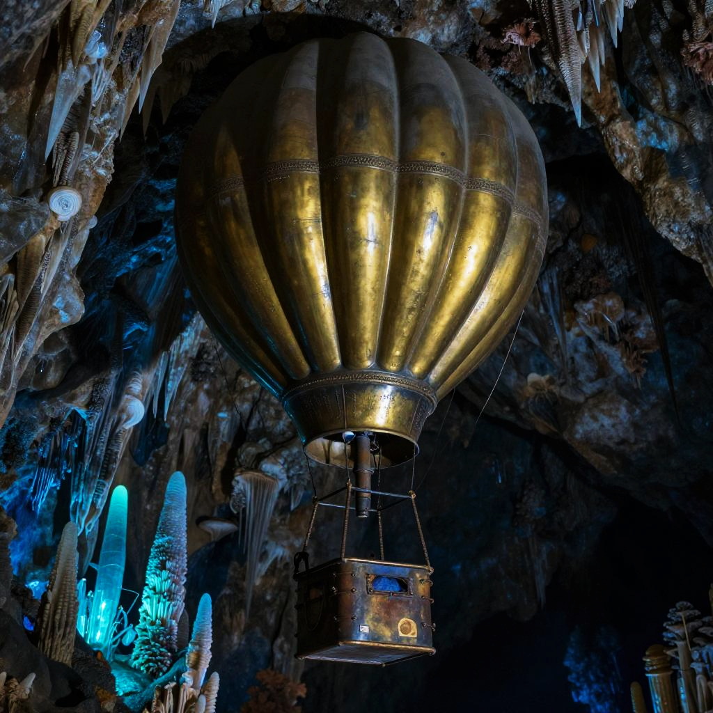 Hyper-detailed cinematic shot of a weathered steam-powered locomotive descending into a abandoned desert train station at twilight, rendered in bold shadows and sepia tones for classic charm to convey tranquil mystery.