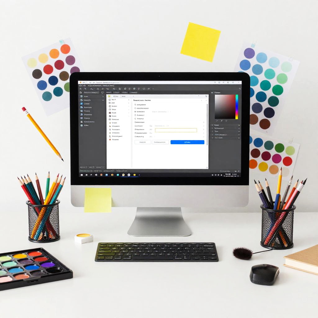 Edit anything creative studio, artist surrounded by floating virtual tools, pencils, brushes, and color palettes, surreal digital art style, bright and colorful atmosphere