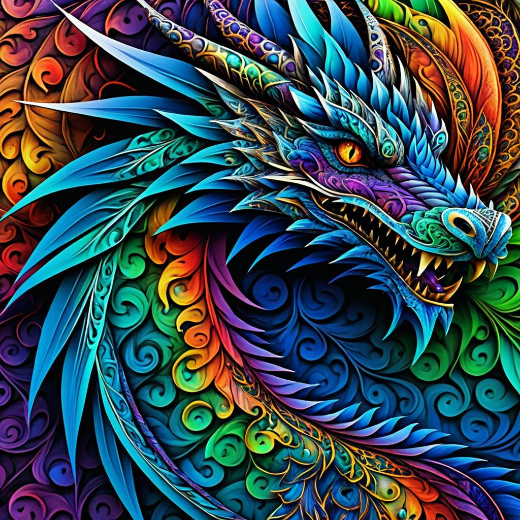 Hyper-Realistic Colorful Dragon with Fractal Zentangle Patterns