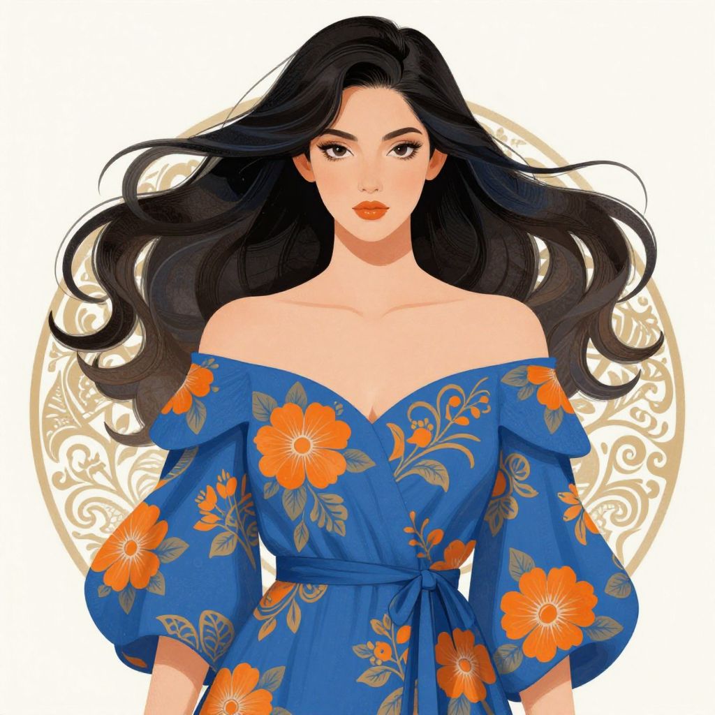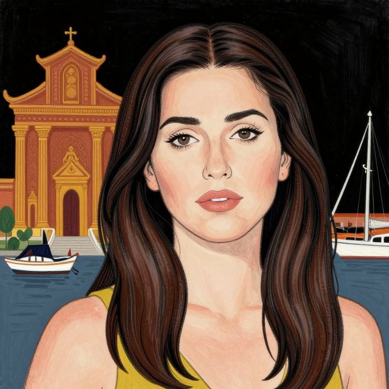 Tasteful line drawing of marina abramovic, surreal naïve art, storybook illustration, triadic colors, closeup portrait, black temple background,