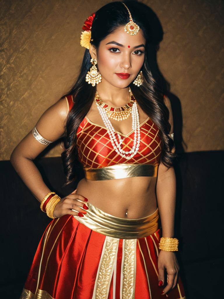 Woman in Red and Gold Lehenga