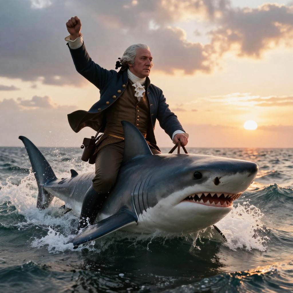 George Washington Riding Shark at Sunset