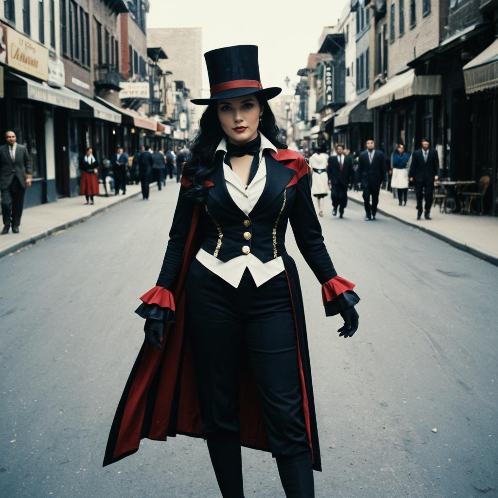 Love Bug, woman in a black and red costume standing next to a red car