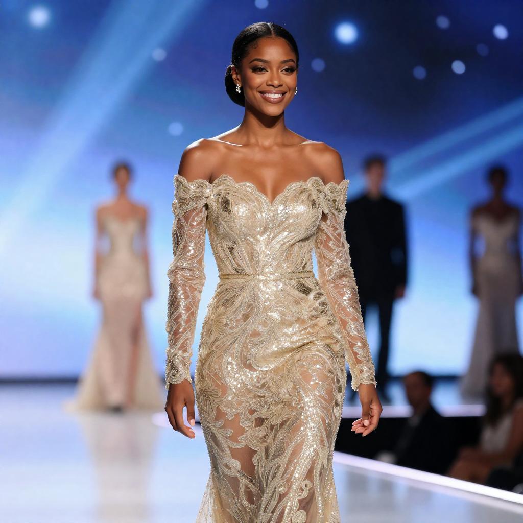 A stunning 34-year-old mixed-race non-binary model exuding charm in a avant-garde haute couture ensemble with sculptural silhouettes and metallic accents. Posing confidently in a classic femme fatale style, they have striking dewy nude lips with a pearlescent sheen. Captured with a 85mm lens, the photograph emphasizes depth of field, with a shutter speed of 1/1250, and an aperture of F/2.2, rendered in breathtaking 8k resolution and HDR quality, enhanced by Unreal Engine 5 with dramatic accent lighting highlighting their captivating beauty.