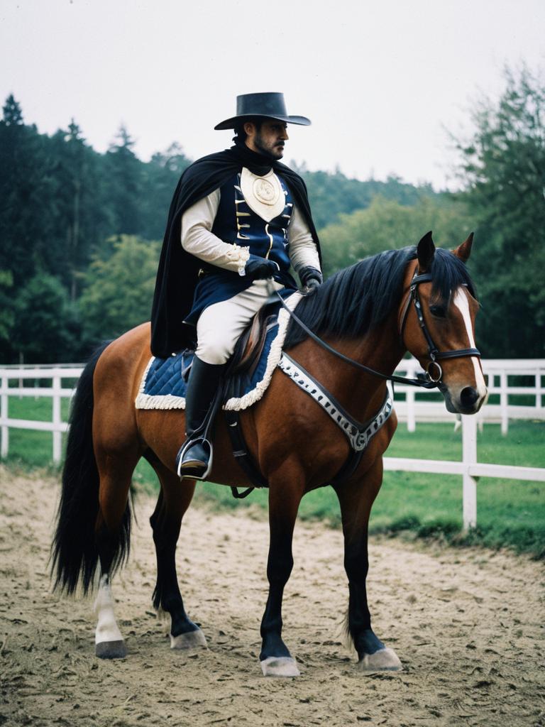 Man in Horse Rider costume, full-body cosplay photo, cinematic realism