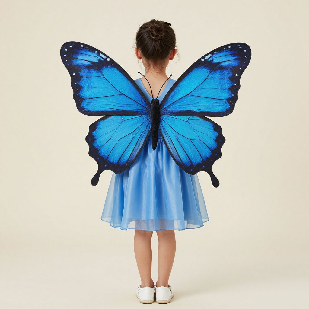 Blue Butterfly Wings Costume, butterfly costume for girls with blue wings and a blue dress
