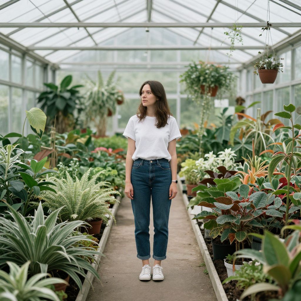 Woman in Greenhouse with Plants