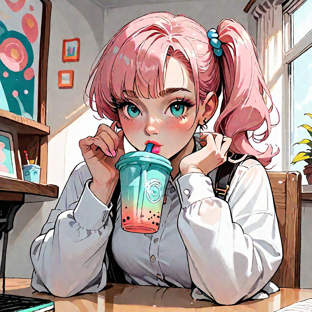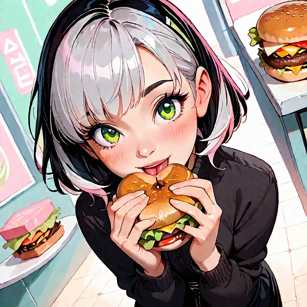 Anime Girl Eating Burger with Smile