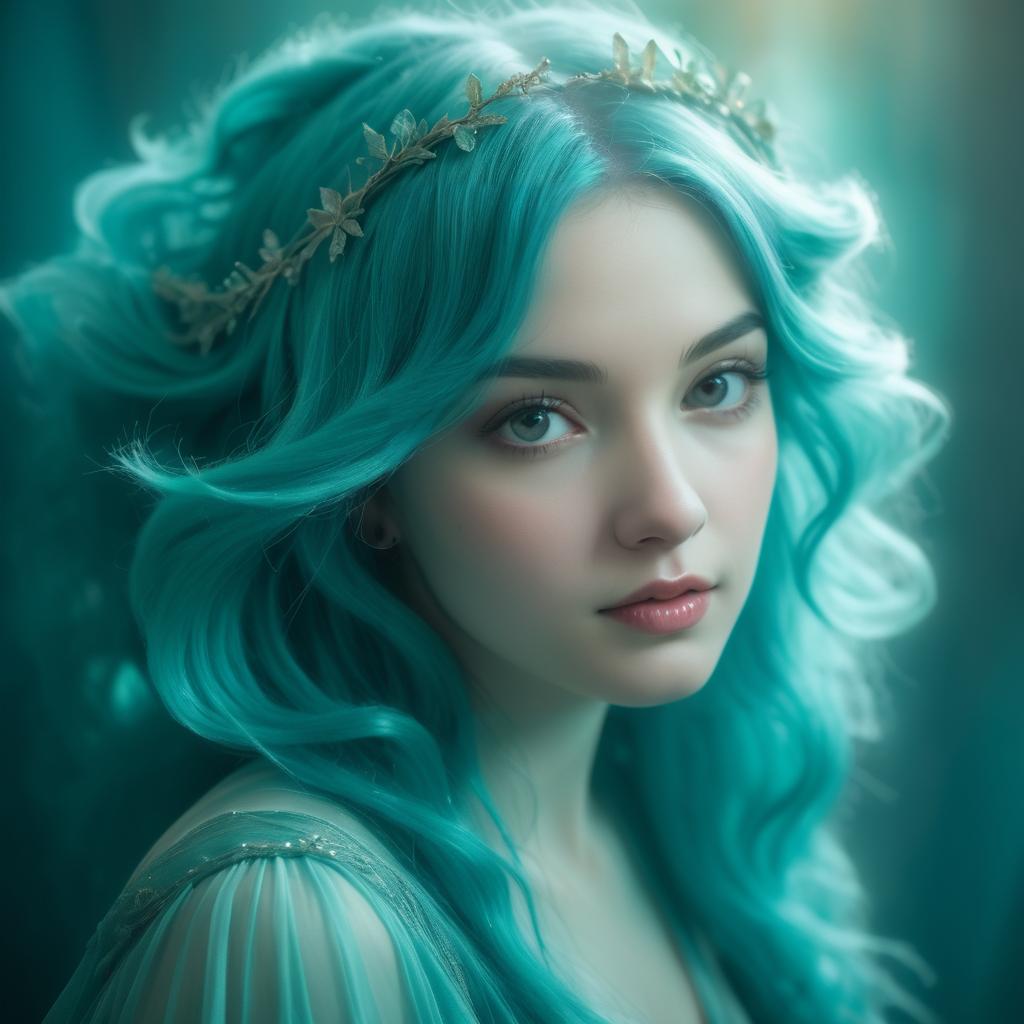 Dreamy Young Woman with Teal Hair