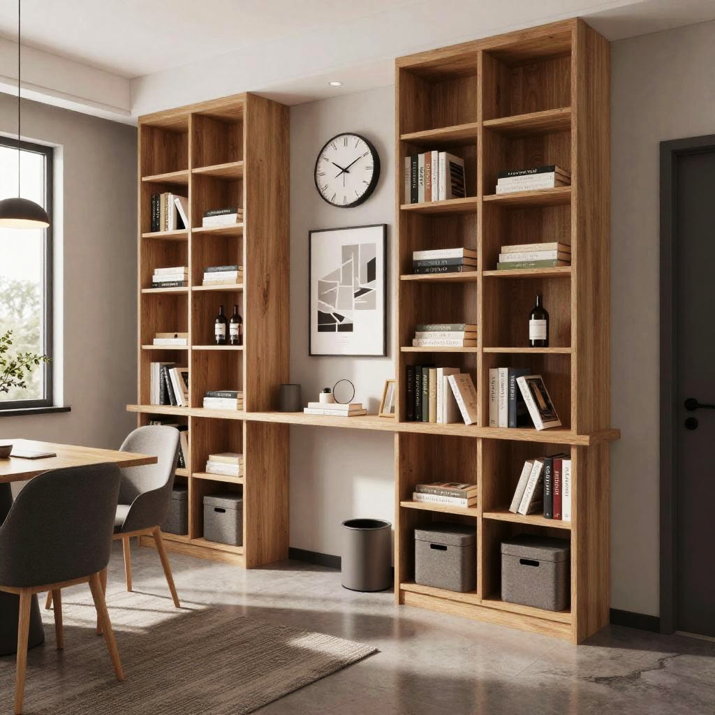((masterpiece))), best quality, ultra-detailed, 8k, wallpaper, extremely delicate and beautiful, highresolution, ray tracing, best shadow, (realistic, photorealistic:1.37), professional lighting, photon mapping, radiosity, physically-based rendering, Nayuta Nordic Modern Interior Design, scenery, no humans, chair, shelf, book, clock, poster (object), table, door, indoors, bookshelf, box, trash can