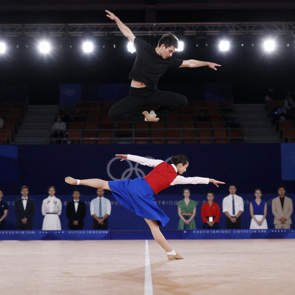 Dancers Leaping in Vibrant Spiral Room