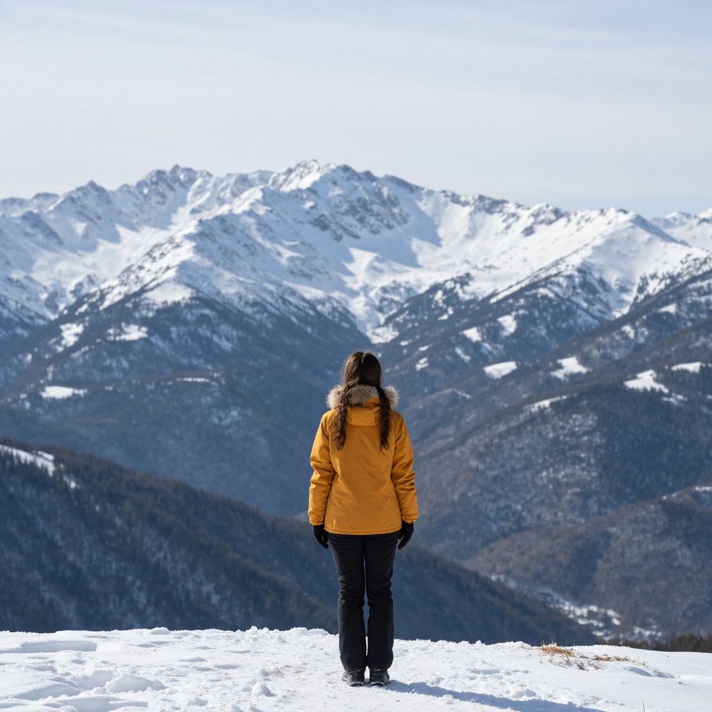 Woman in Snowy Mountain Landscape