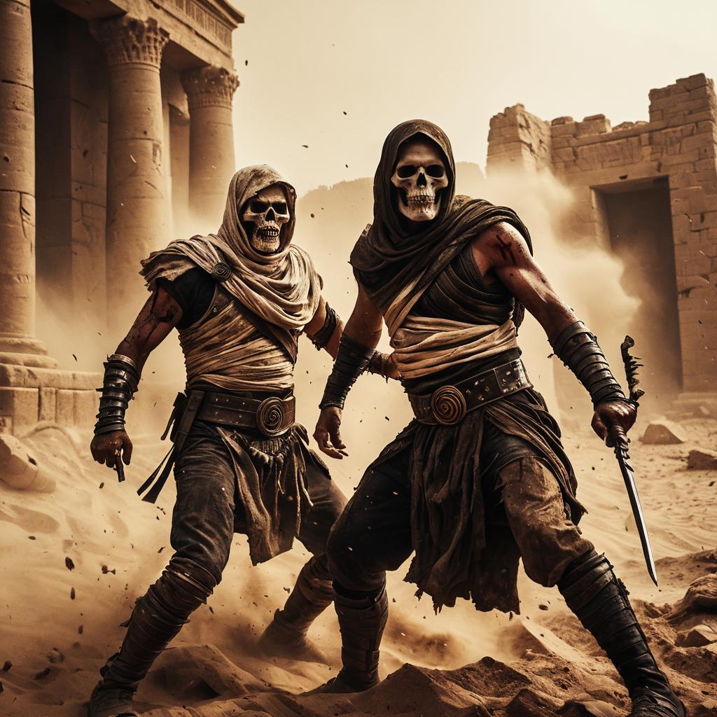 Epic Battle Between Male Gargoyles on Gothic Cathedral Rooftop