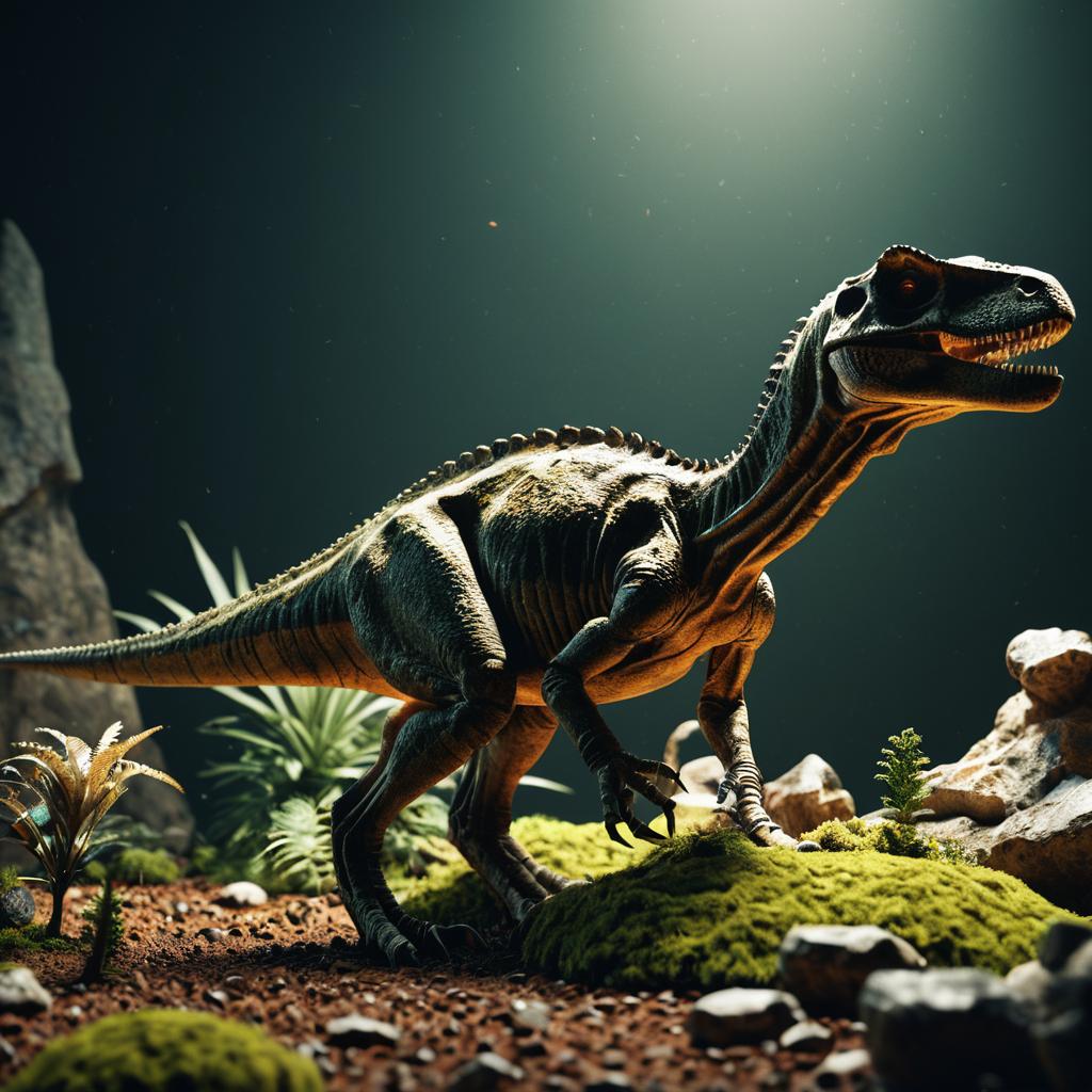 Can you design poster, burnt sienna design, paleontology theme, 32k, soft lighting, sharp-focus, rtx lighting, lumen reflections, optics, ray traced, Anti-Aliasing SSAA, CGI, basic design, can you use dinosaur bones, can you add fossils, can you use moss green.