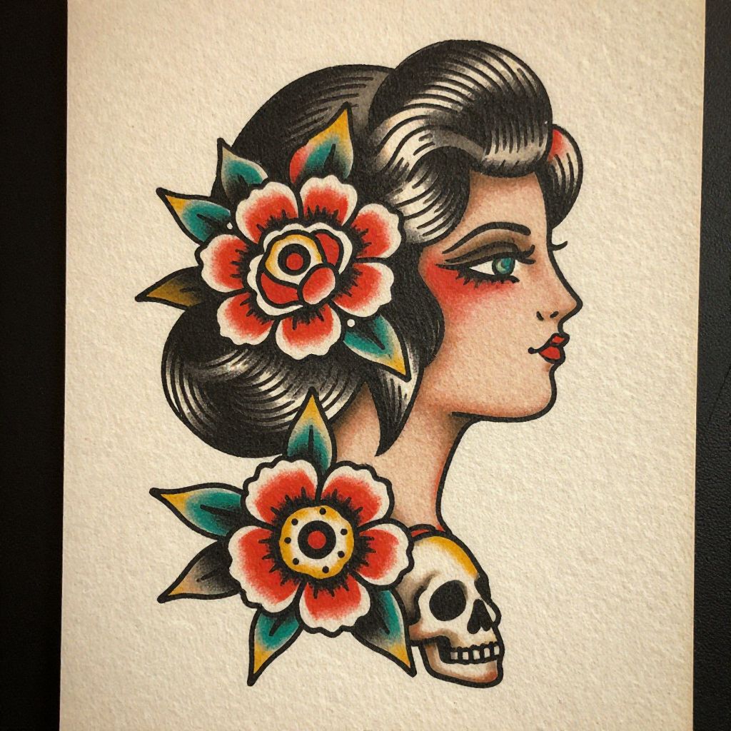 "Apothecary a female holding a lion cub, with flowers in her hair, in the style of a neo traditional tattoo,"