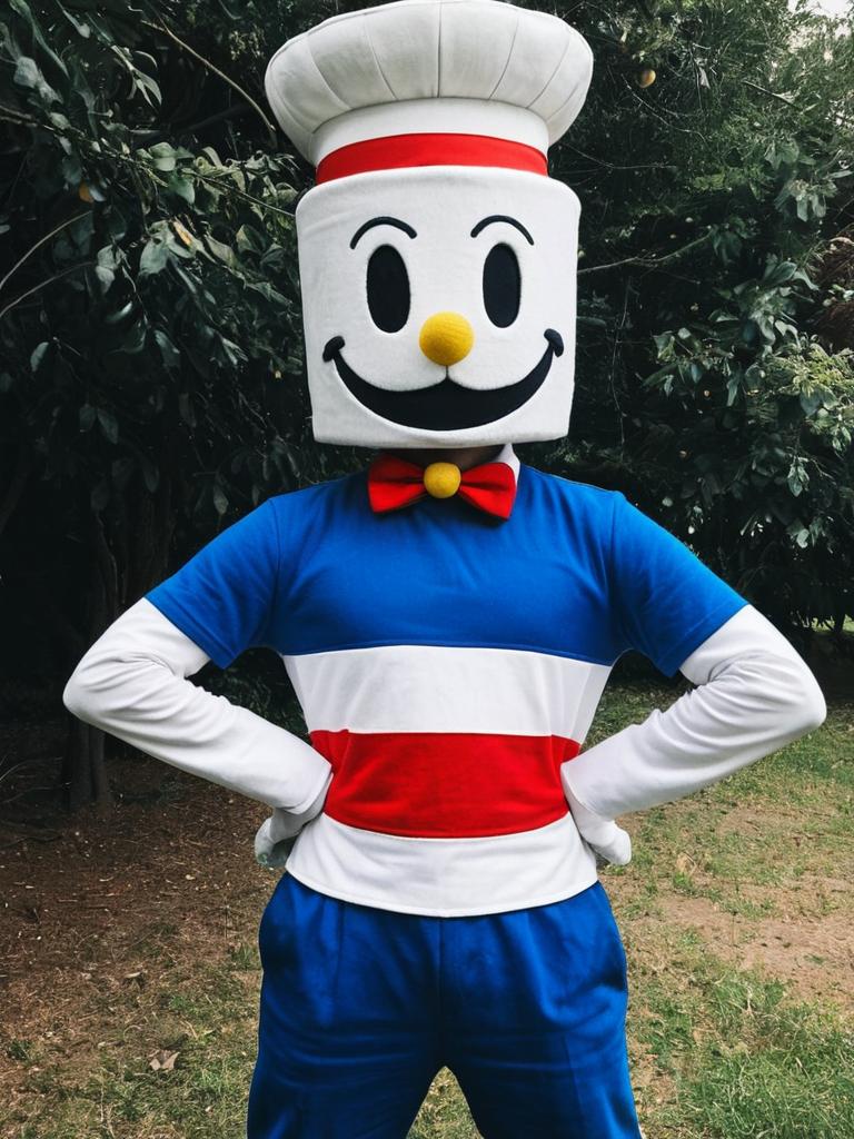 Man cosplay. Cuphead %26 Mugman costume. Realistic photo